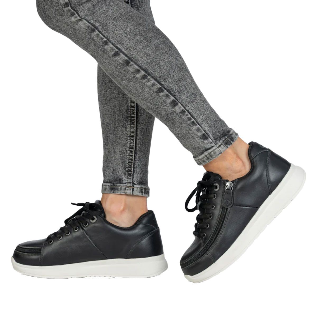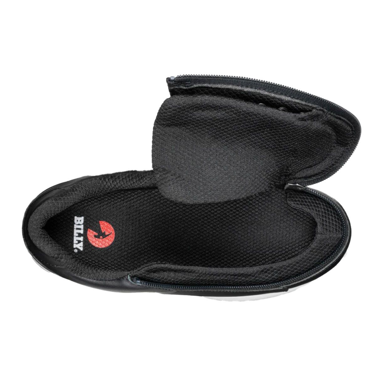 Billy Black Leather Comfort Plush Chaussures Un ajout élégant et fonctionnel à votre quotidien. L'extérieur en cuir souple et la doublure en tricot doux créent une chaussure confortable et durable. La fermeture éclair signature BILLY facilite l'enfilage et le retrait, idéale pour celles qui apprécient la simplicité et l'élégance.