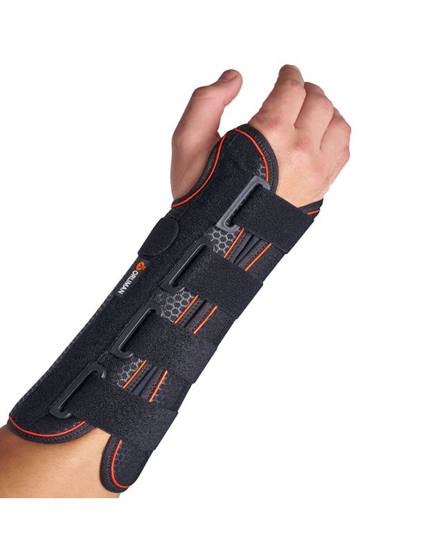 Orliman Support de Poignet Semi-Rigide avec Attelle Palmaire Longue Un allié fiable pour la stabilité et le confort de votre poignet. Conçue avec une base en tissu léger et respirant et une doublure en coton, cette orthèse assure un confort optimal tout en permettant une liberté de mouvement totale des doigts. L'attelle palmaire en aluminium malléable, complétée par des supports dorsaux en plastique, offre un maintien personnalisé pour une immobilisation optimale du poignet à l'angle souhaité. Simplicité et efficacité sont au rendez-vous grâce au tissu dorsal élastique pour un ajustement facile et aux sangles Velcro ajustables pour une fermeture rapide par boucles anti-torsion. L'immobilisation et la stabilisation fonctionnelles des articulations du carpe, associées à un soulagement efficace de la douleur, font de cette orthèse de poignet un indispensable pour les personnes souffrant du syndrome du canal carpien, d'entorses du poignet, d'arthrose, de tendinite ou en convalescence. Son design noir élégant allie style et praticité, en faisant une solution polyvalente pour divers problèmes de poignet.